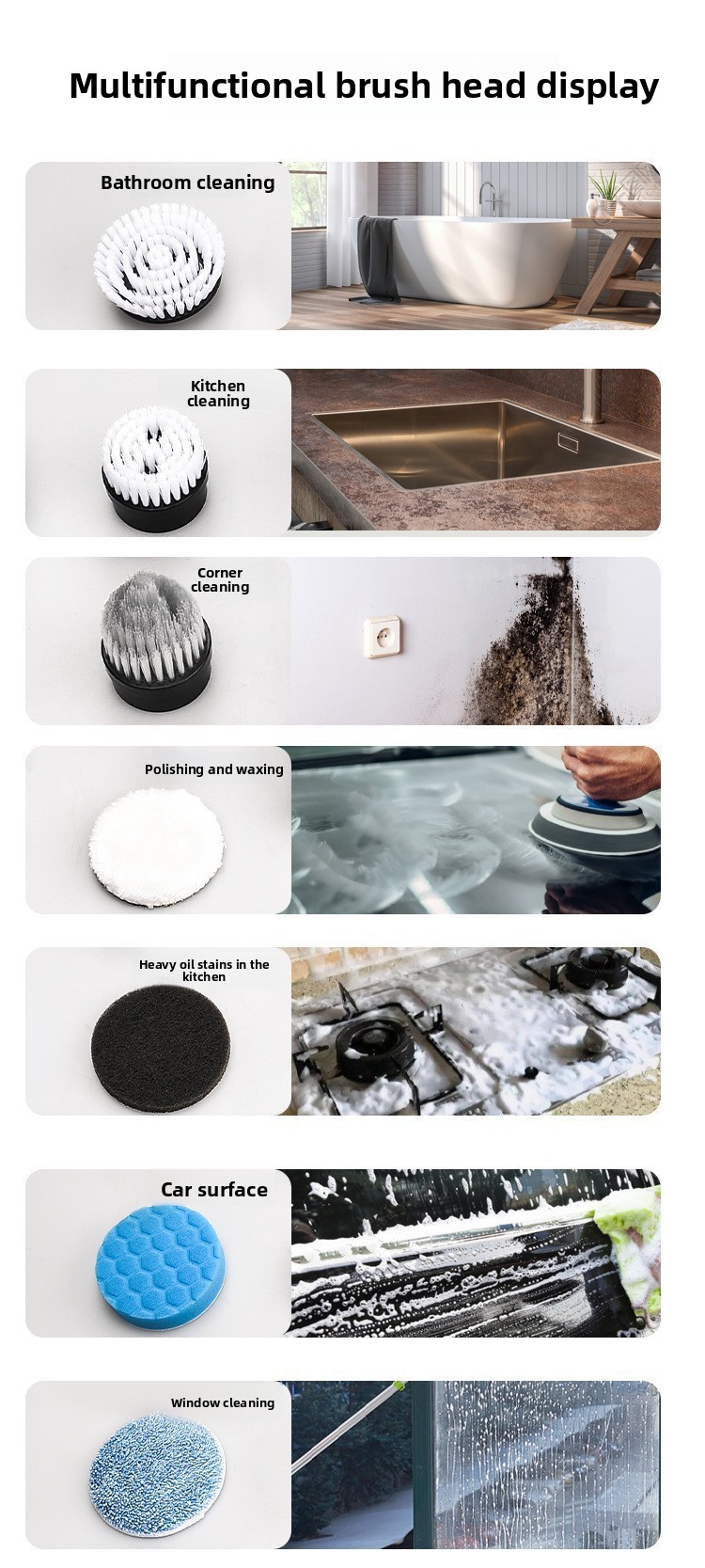 Multi-functional: Interchangeable brush heads for various surfaces